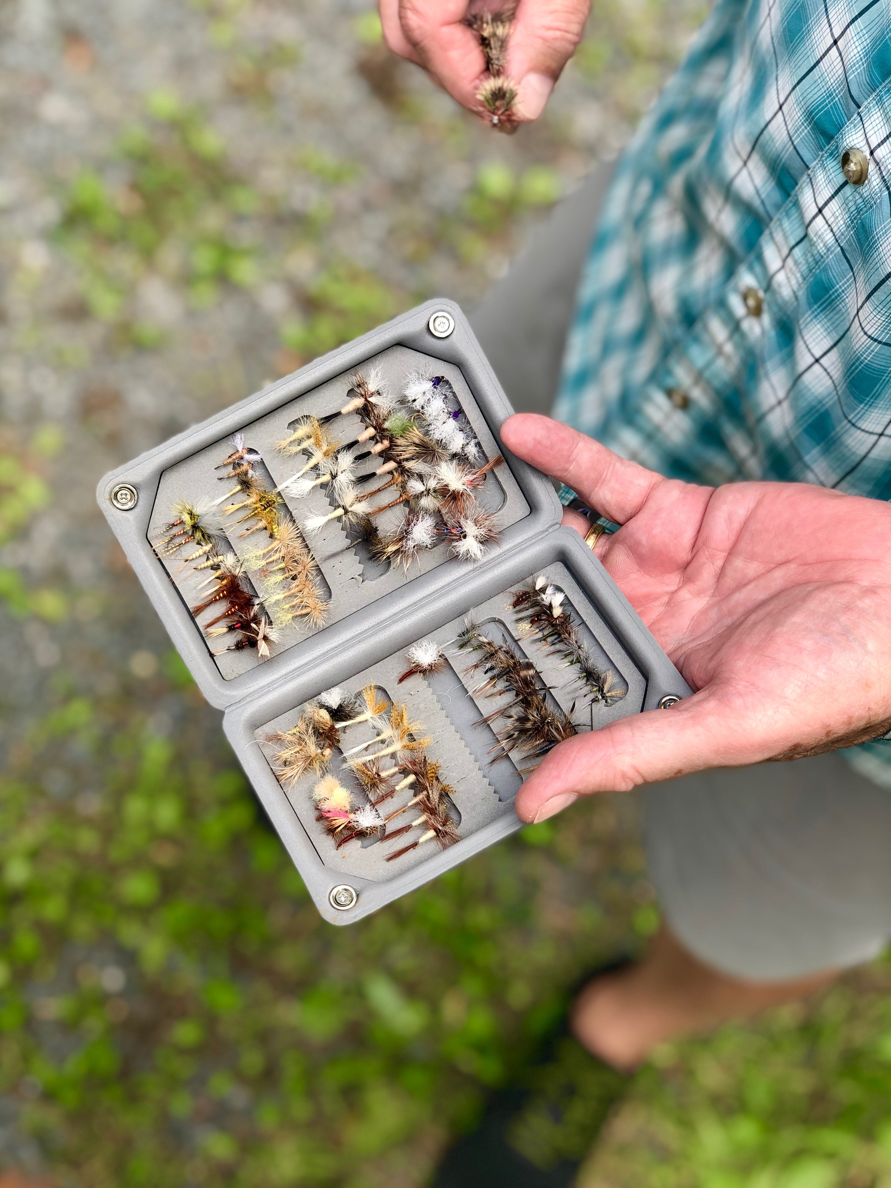 The photo of the box of flies reminded me of sitting in my grandfather’s work room, tying flies. Mine didn’t look like real flies (his did), but it sure was fun.