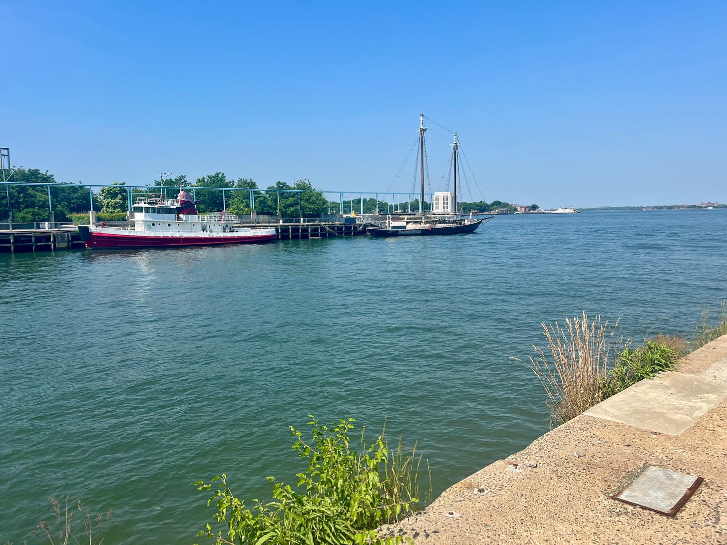Before Rachel and I meandered down to the waterfront, looking out at Governor's Island and the ships passing through Buttermilk Channel, we met at Poppy’s. We both bought iced coffees in a futile attempt to fight off the heat and set out into the cloudless day.