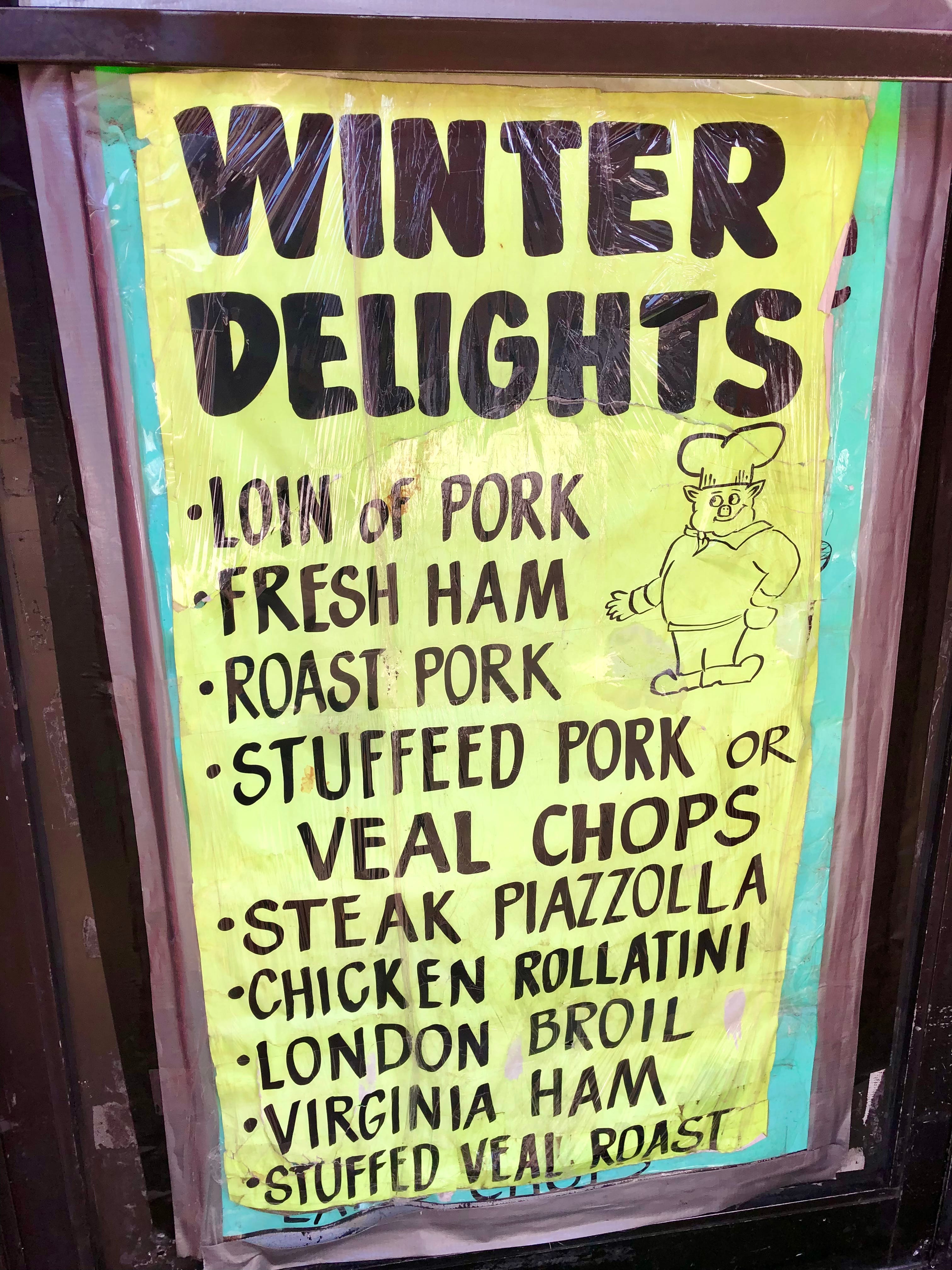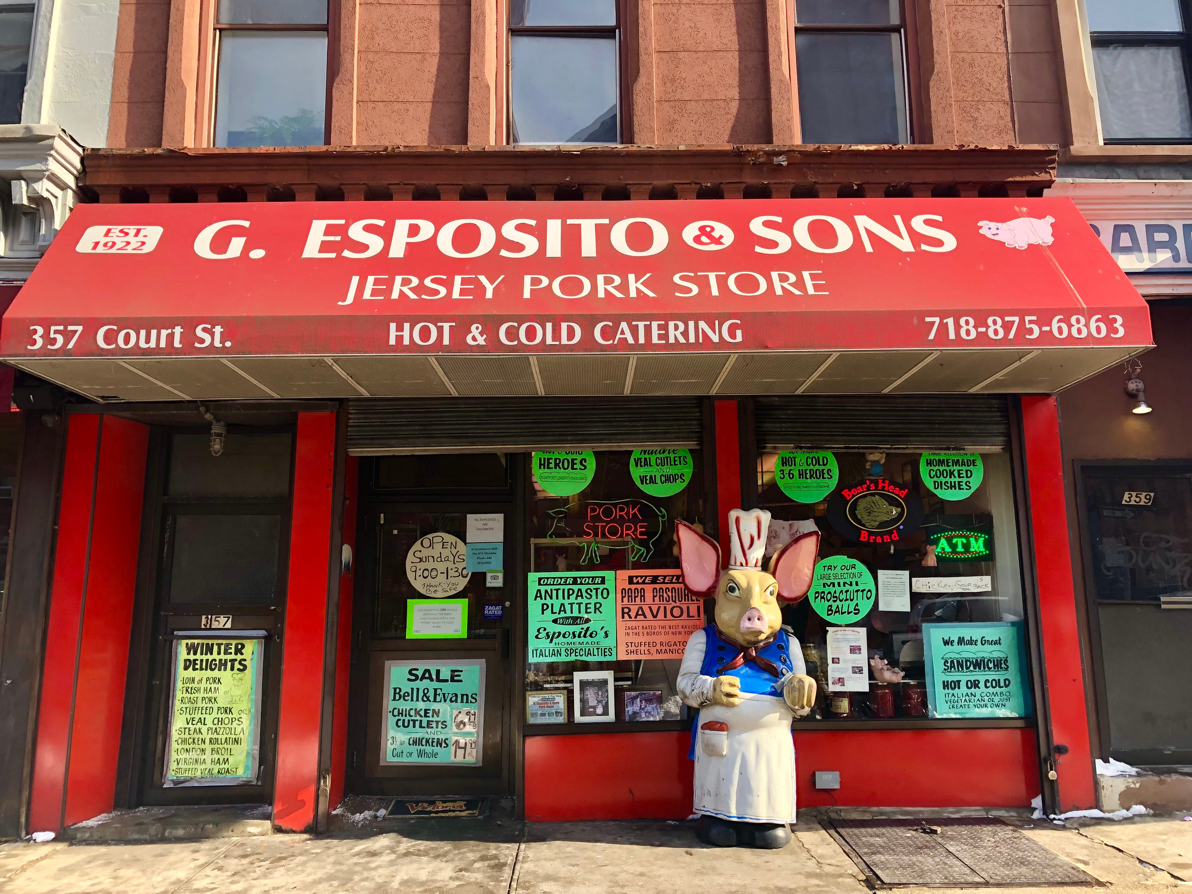 Our walk will take us through Boerum Hill, then Cobble Hill, and then Carroll Gardens. Mira will introduce me to G. Esposito & Sons Jersey Pork Store, where we pick up Godfather sandwiches and slices of soppressata—a meat I’ve never heard of and have difficulty pronouncing—the tiniest bit of which Mira urges me to bring home to my dog.