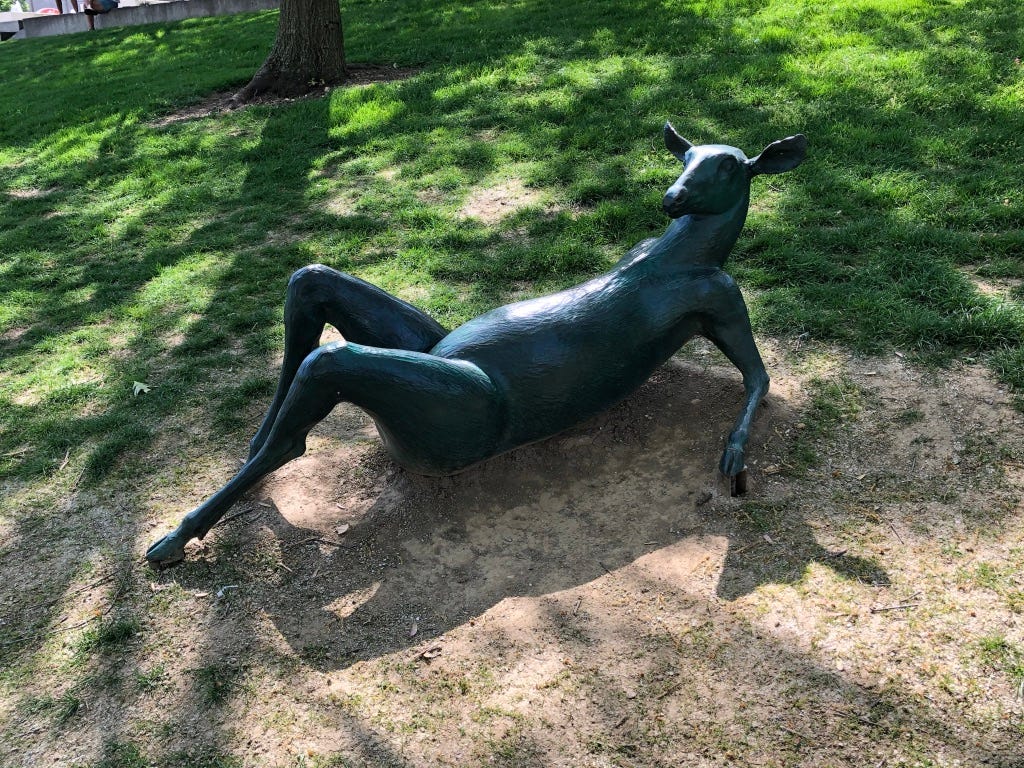 I really enjoyed taking this walk with you and Saeed - and those deer statues are just hillarious! Thanks to Saeed for sharing about his experience in Columbus, activism and friendship. Very inspiring.