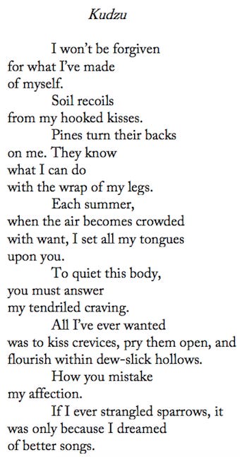I: This is reminding me of one of my favorite poems: “Kudzu,” by Saeed Jones.