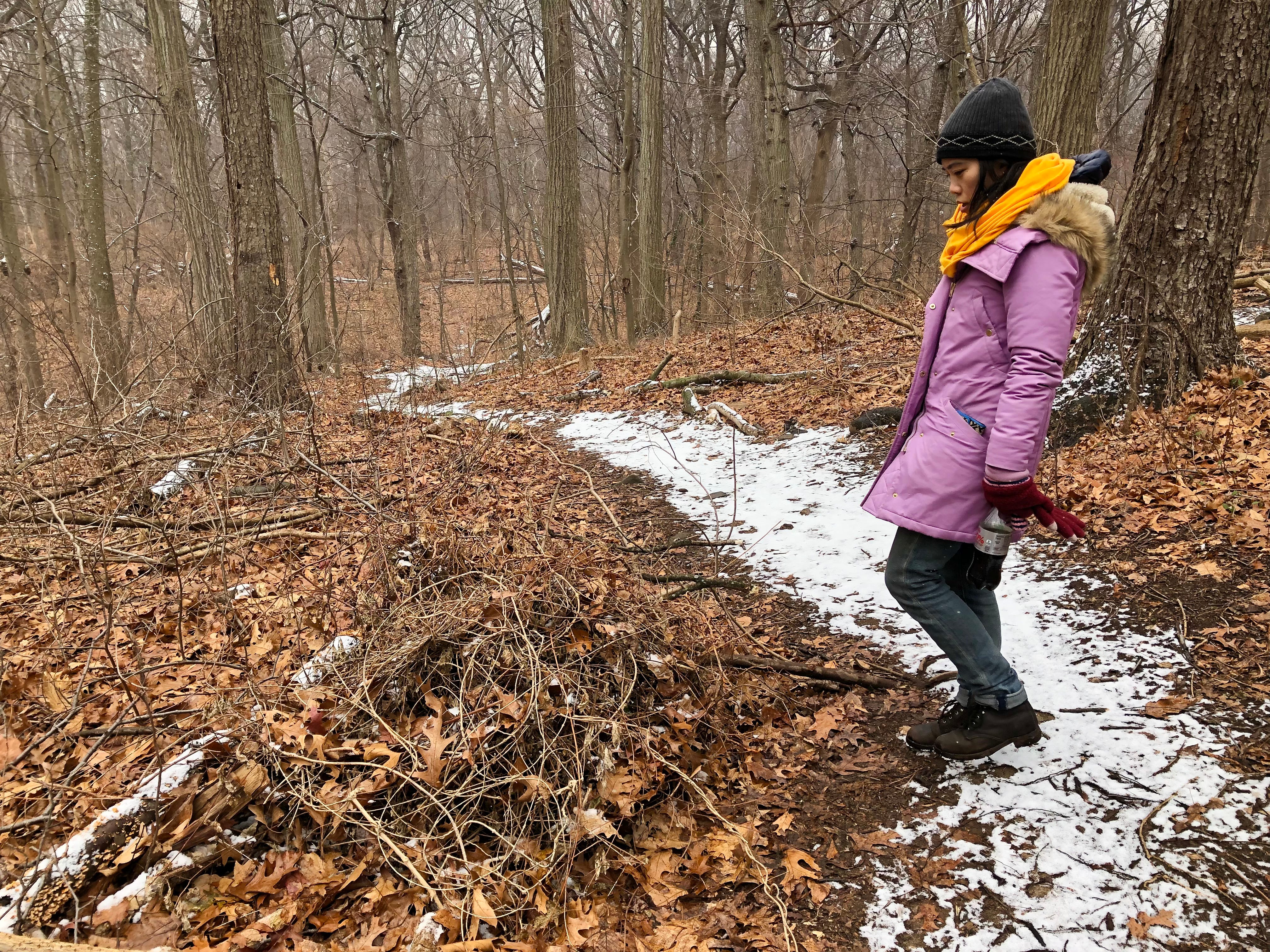 Stephanie Foo: We are in one of the truly wild places within New York City—Forest Park, which is in Queens. We’re on the blue trail and it’s lightly snowing, a magical time to be out here. Everything is lightly dusted in white and the park is deserted. Silent.