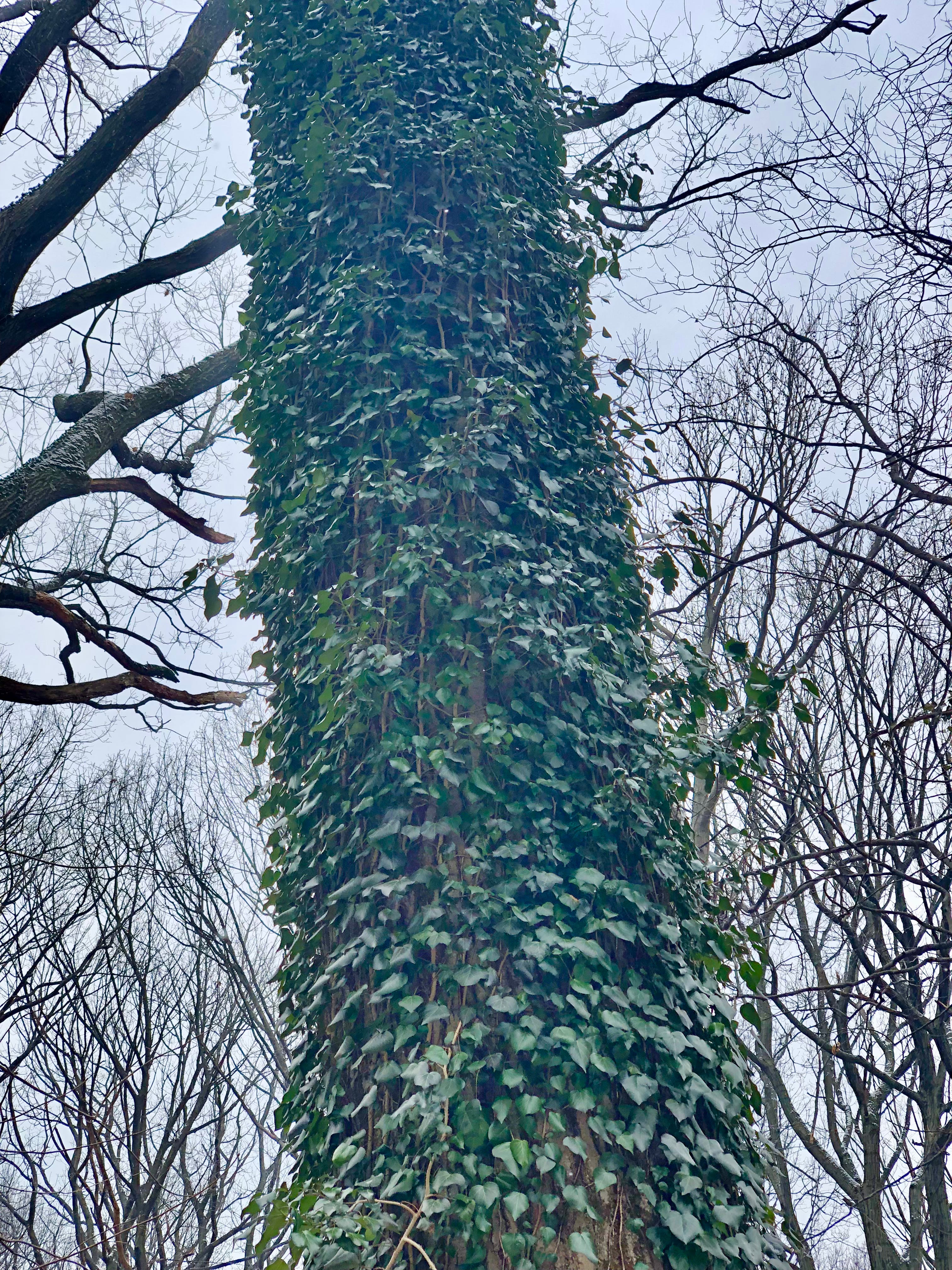 SF: Well, large trees’ll be fine. They can handle it, but those little trees? The English ivy can strangle them and they’ll die before they can fully grow.