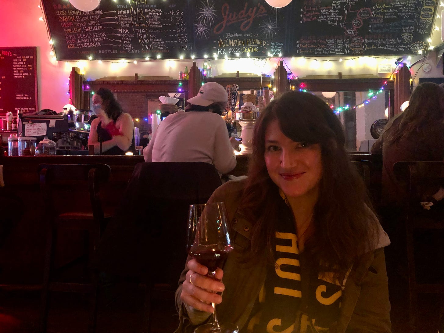 LS: We’re heading to Judy’s in Sunset Park. The place is named after Sam—the owner—’s mother. Sam has amazing taste in wine and beer, so he hand selects everything in the place. I believe it’s Sam’s first bar. During the pandemic, Judy’s turned into a bottle shop, so people could come here and buy wine bottles to go, which was really nice. But now they’ve reopened as a bar, which makes me happy. It's so rare that you find a bar with really, really good wine that's not at all snooty. That’s what I love about Judy’s, everything is so, so good—but it isn’t antiseptic. It’s cozy. Everyone’s super friendly. It’s quiet. The menu is relatively cheap. Plus, I can write and draw.