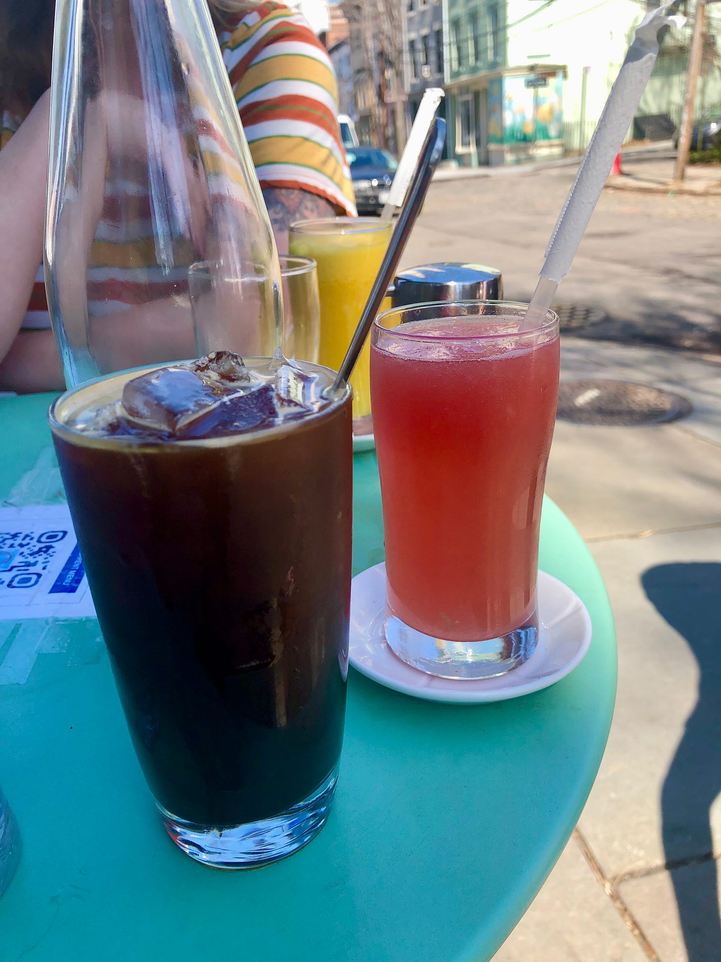 By now we have sat down at Cafe Gitane, ordered cold drinks to quench our thirst, and finished them. There’s only one last thing to do. Walk into DUMBO. As Emily stated earlier, DUMBO is horrible—but it’s also where the subway station is. There’s a metaphor in there somewhere, I think to myself, but our walk was a long one and I’m too tired to figure it out.