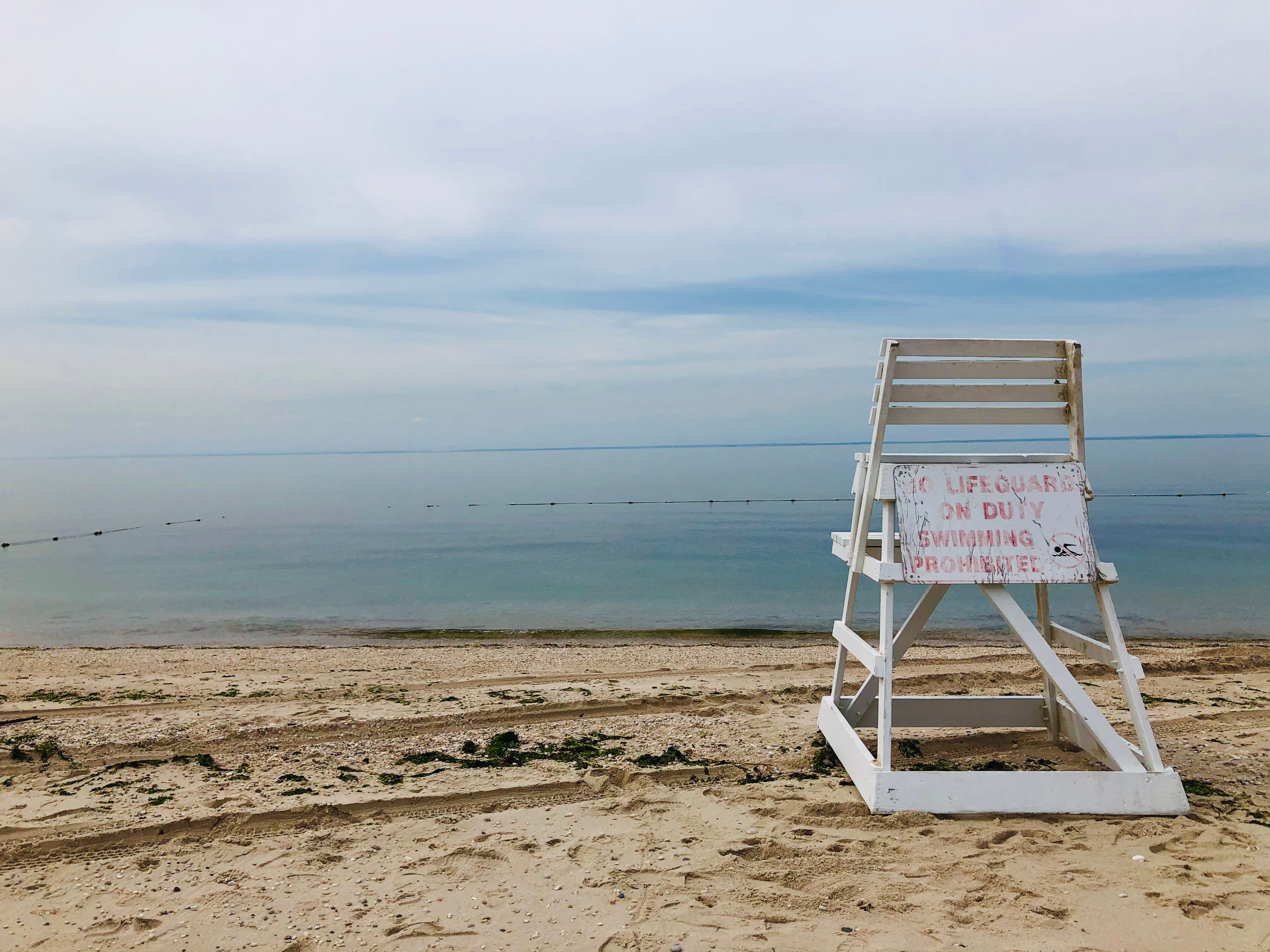 Reeves Beach is located at the end of Park Road in Riverhead, New York. A gazebo sits atop a bluff, from which a long, steep set of wooden stairs brings me down to the sandy shoreline. At the bottom of the stairs stands a life guard chair and swimming area that looks identical to a photo I found of the beach from the 1950s. There is also a ramp for vehicles. If you’re a member of the beach you can still drive your truck, jeep, or car if you’re reckless, out onto the sand.
