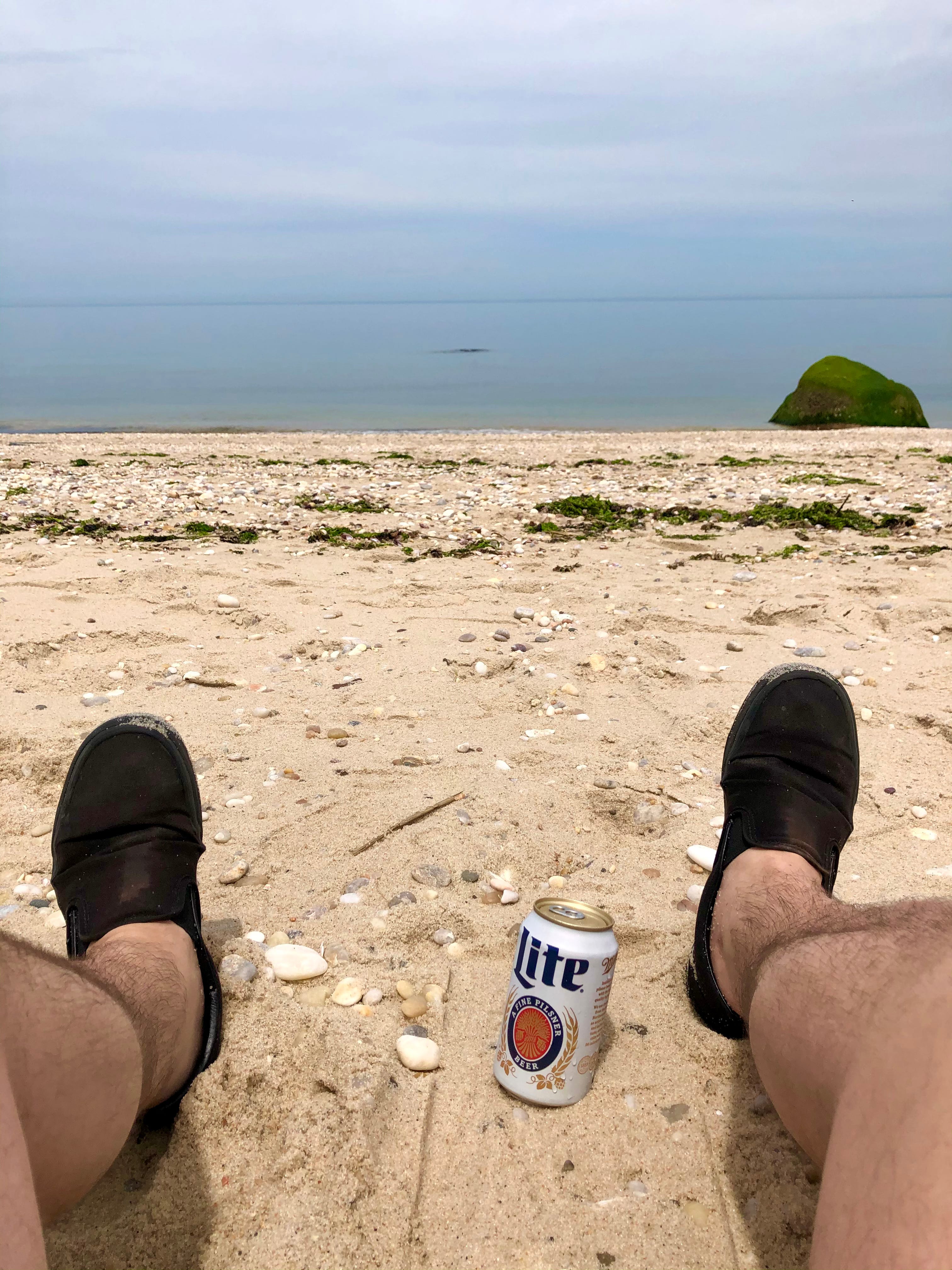 I walk further down the beach. The teens are gone. In the distance I can see the two men loading their old rowboat into the back of a truck. I sit down by the water, my now cold beer in the sand in front of me, and listen to the ocean gently meet the shore.